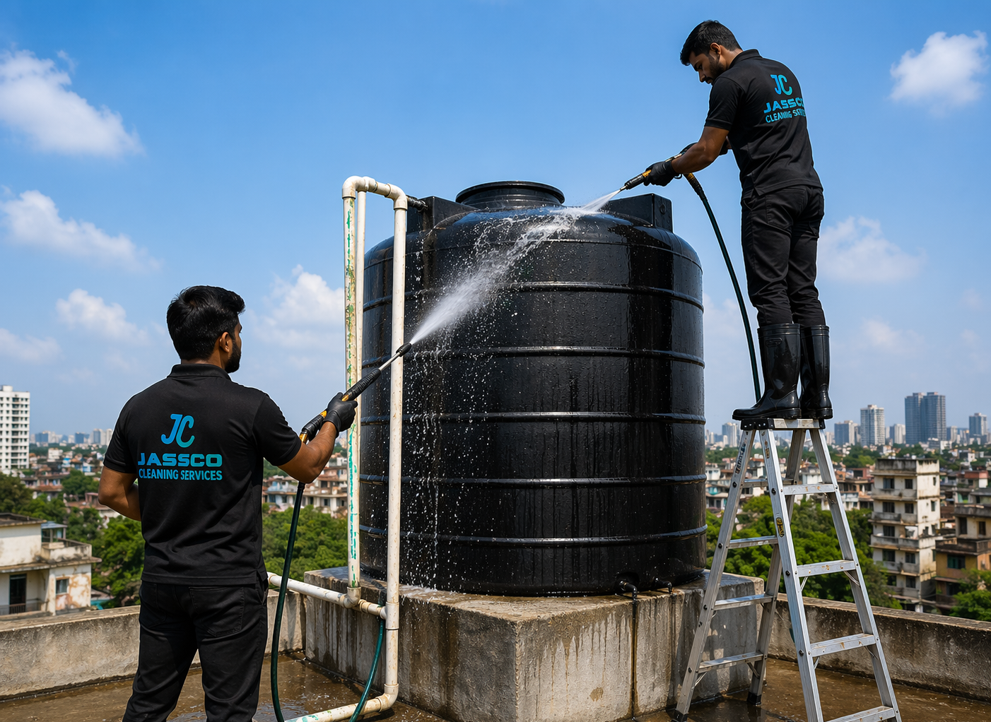 Water tank cleaning typically includes: Draining of the tank Removal of sludge, dirt, and sediments High-pressure cleaning of tank walls Disinfection and sanitization Final rinse and safe refilling